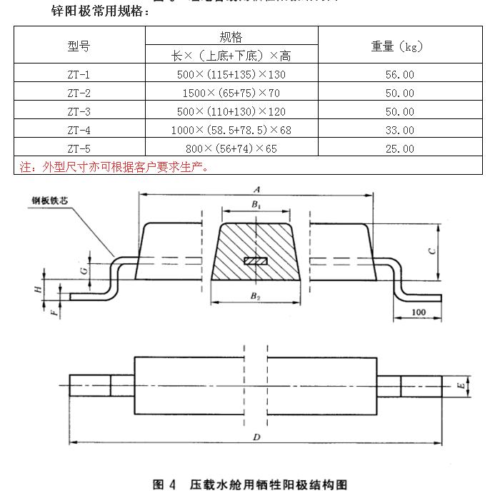鋅陽極主體:通常采用高純度鋅及鋁、鎘等合金化鑄成,如鋅鋁鎘系(ZAC 系)犧牲陽極,符合相關(guān)國家標(biāo)準(zhǔn)和國際標(biāo)準(zhǔn),具有陽極自溶性小、電流效率高、陽極發(fā)生電流的自調(diào)節(jié)性能好等特點(diǎn)。