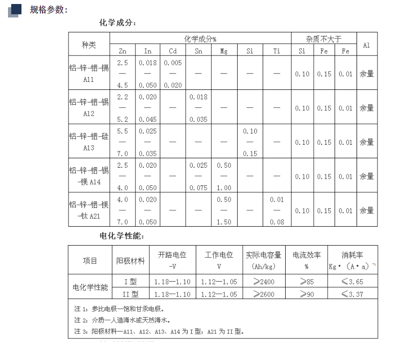 我公司生產(chǎn)的鋁合金犧牲陽(yáng)極采用優(yōu)良的原材料(鋁陽(yáng)極原料純度不低于90%)多重質(zhì)檢工藝(雜質(zhì)質(zhì)檢、金相顯微分析、全套化學(xué)分析),