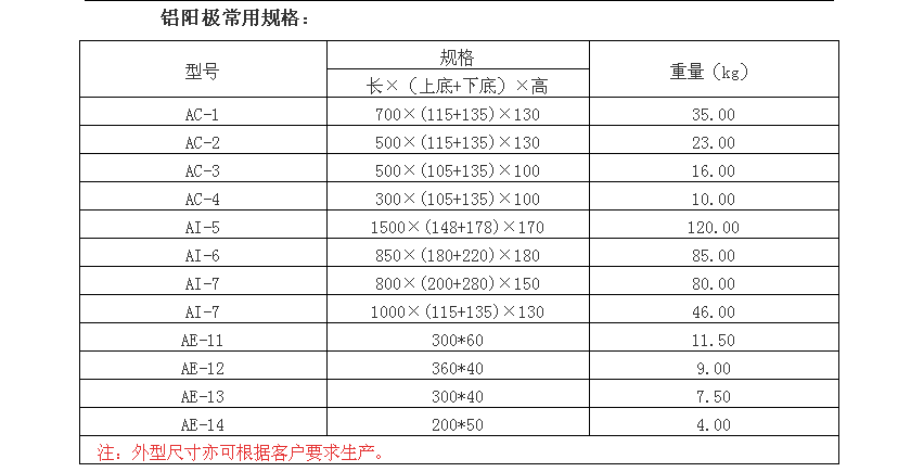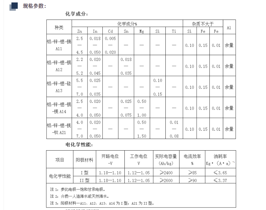 我公司生產(chǎn)的鋁合金犧牲陽極采用優(yōu)良的原材料(鋁陽極原料純度不低于90%)多重質(zhì)檢工藝(雜質(zhì)質(zhì)檢、金相顯微分析、全套化學(xué)分析),